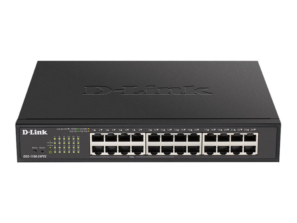 D-Link DGS-1100-24PV2 24-port Gigabit Smart switch, 12x GbE PoE+, PoE 100W