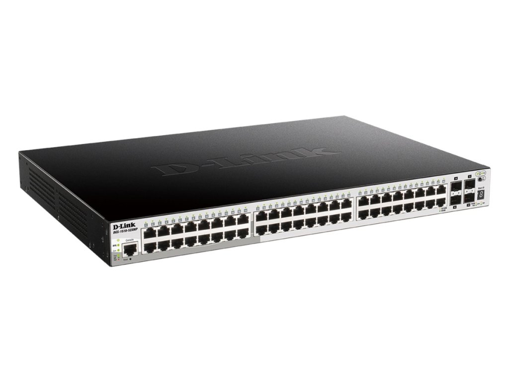 D-Link DGS-1510-52XMP je inteligentní řízený stohovatelný 48-portový L2/L3 Gigabit PoE+ switch s 4x 10G SFP+ porty pro uplink nebo HW stacking. Podpora PoE umožňuje flexibilní napájení IP telefonů, Wi-Fi přístupových bodů a IP kamer po síťové infrastruktuře. Do HW stohu lze propojit až 6 jednotek, které vytváří jeden logický celek. Ten nejen výrazně zjednodušuje správu sítě, ale také umožňuje redundantní připojení dalších prvků sítě, jako jsou další přepínače, servery nebo NAS úložiště (LACP trunk portů přes linky vedoucí do různých přepínačů ve stacku). Přepínač DGS-1510-52XMP je vhodným řešením pro malé a střední organizace (SMB, SME), které vyžadují pokročilé funkce, jednoduchou správu sítě.