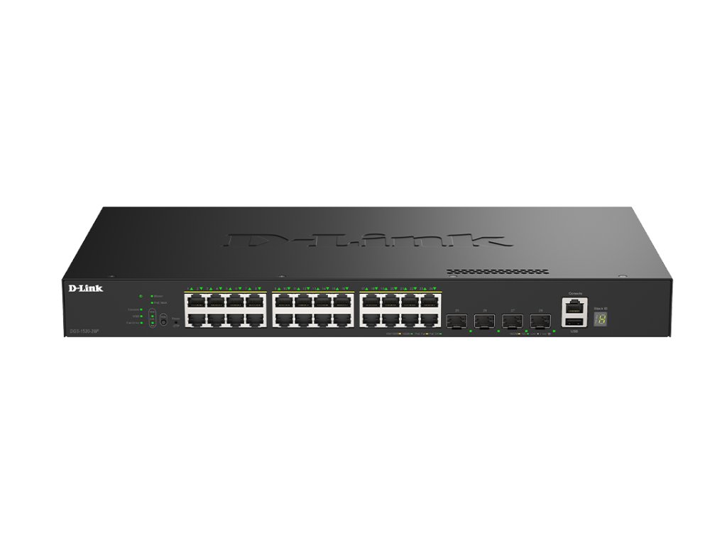 Managed Switch D-Link DGS-1530-28PŘada DGS-1530 je součástí řady stohovatelných inteligentních přepínačů Layer 2 od společnosti D-Link, které poskytují kabelové gigabitové rychlosti pro metropolitní ethernetové a kampusové sítě.