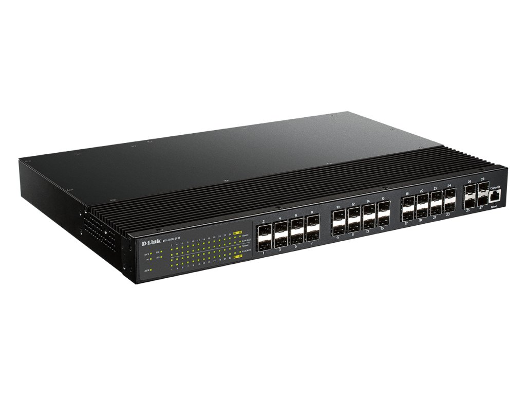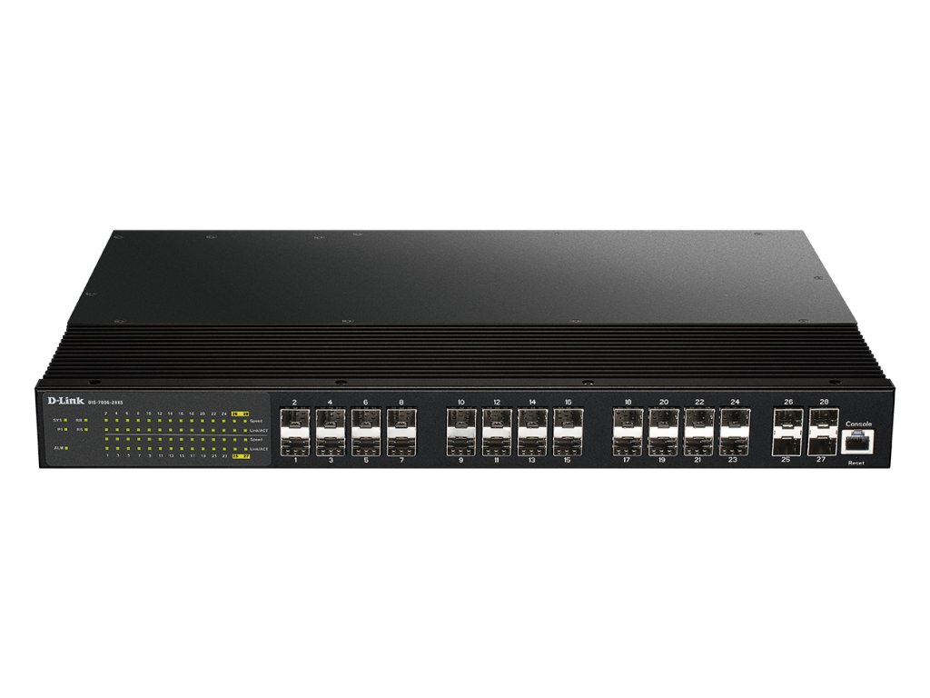 DIS-700G-28XSPrůmyslový spravovatelný 28-portový optický Gigabit Ethernet switch s 10G uplink porty. Switch je osazený 24 sloty SFP a 4x 1G/10G SFP+ sloty pro uplink. SFP+ sloty jsou dvourychlostní, podporují 10G SFP+ a Gigabit SFP transceivery. Správa přepínače je z webového rozhraní, pomocí SNMP nebo CLI příkazů (sériová konzole, Telnet).