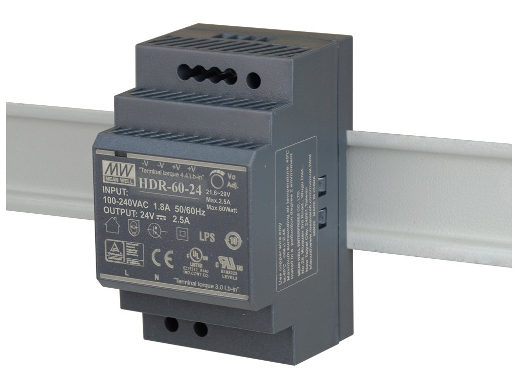 D-Link DIS-H60-24 průmyslový zdroj 24V, 60WD-Link DIS-H60-24 je 60W 24VDC průmyslový pulzní napájecí zdroj s montáží na DIN lištu, s jističovým profilem.