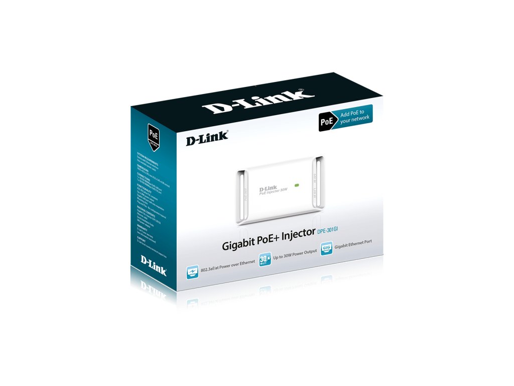 OVERVIEW*The IEEE 802.3at (PoE+)/802.3af (PoE) compliant DPE-301GI Gigabit PoE+ Injector is designed to supply data and up to 30 watts of power to PoE-enabled devices such as network cameras and wireless access points.