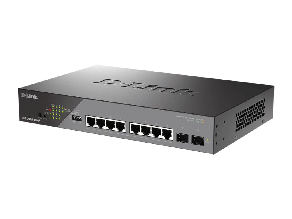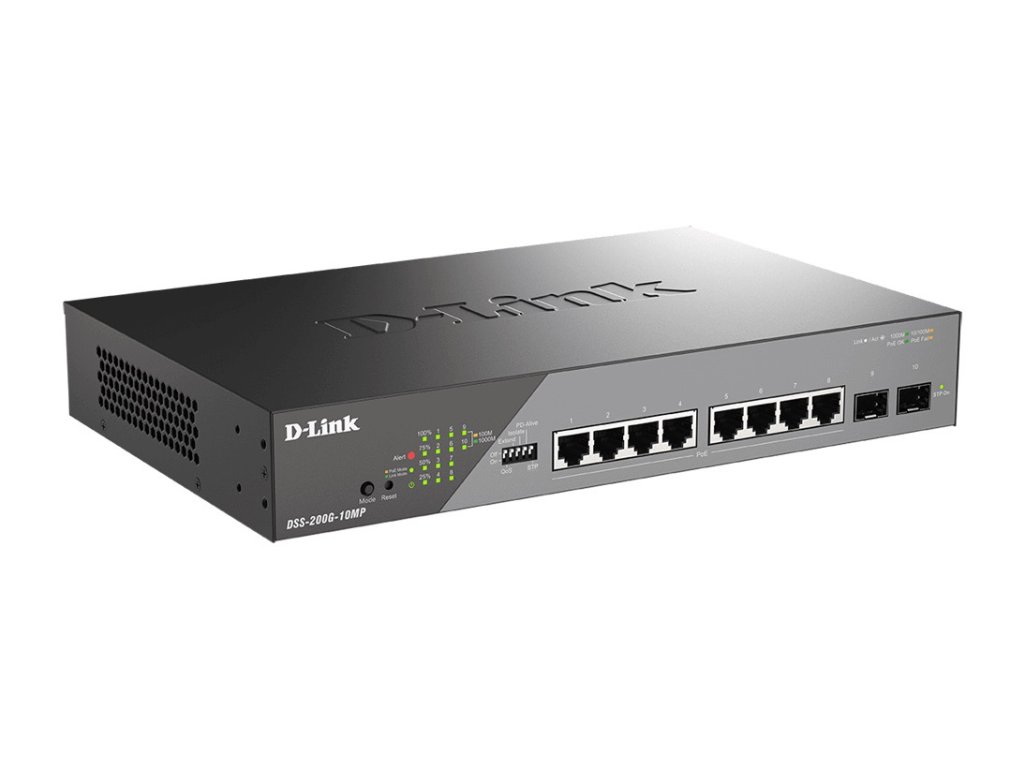 D-Link DSS-200G-10MP/E 10-Port Gigabit Ethernet PoE+ Surveillance SwitchTyto přepínače byly navrženy tak, aby splňovaly požadavky na dohled pro podniky všech velikostí, s funkcemi jako je podpora energeticky náročných PTZ kamer, vysokým PoE výkonem, Auto Surveillance VLAN a přepěťovou ochranou. Switche jsou ideální pro použití u IP dohledových systémů.