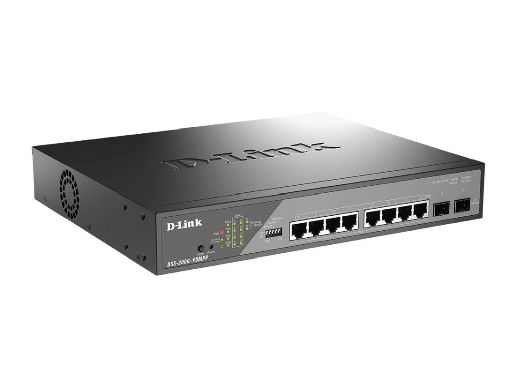 D-Link DSS-200G-10MPP/E 10-Port Gigabit Ethernet PoE++ Surveillance SwitchTyto přepínače byly navrženy tak, aby splňovaly požadavky na dohled pro podniky všech velikostí, s funkcemi jako je podpora energeticky náročných PTZ kamer, vysokým PoE výkonem, Auto Surveillance VLAN a přepěťovou ochranou. Switche jsou ideální pro použití u IP dohledových systémů.