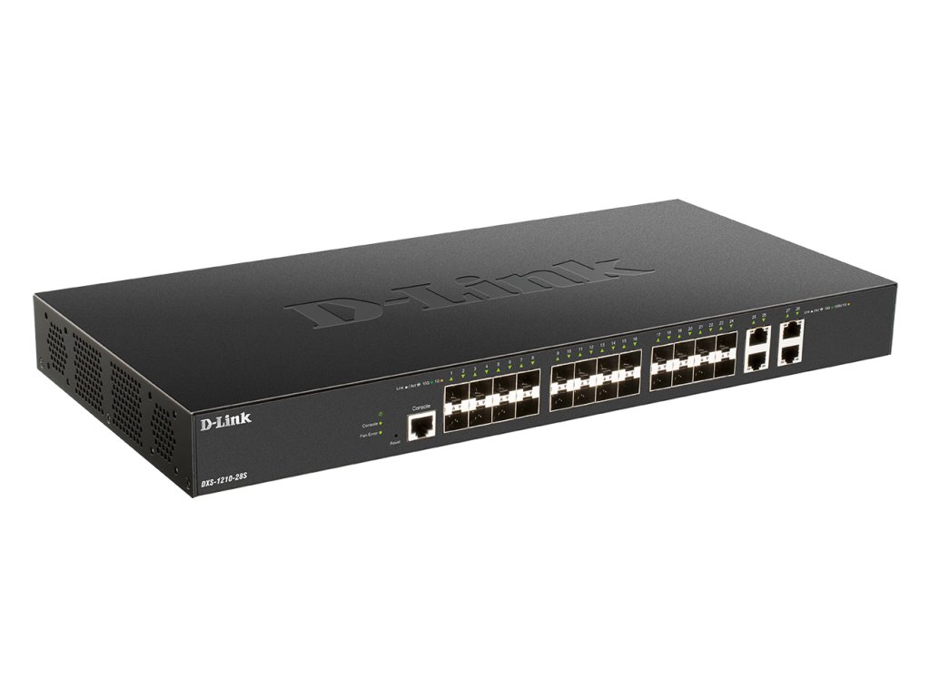 D-Link DXS-1210-28S je 28-portový 10G inteligentní L2/L3 řízený přepínač. Nabízí 24 portů 10G SFP+ a 4 metalické porty 10GBase-T RJ-45. Je vhodný jako páteřní prvek v malých a středních (SMB) sítích nebo pro agregaci v rozsáhlých podnikových (Enterprise) sítích. V serverovnách najde uplatnění jako Top of Rack (ToR) switch pro připojení serverů.