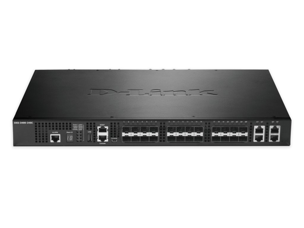 Řízené přepínače D-Link DXS-3400 řady Lite Layer 3 Stackable 10 GbE jsou kompaktní, vysoce výkonné přepínače, které jsou vybaveny přepínáním, směrováním a velmi nízkou latencí 10Gigabitového Ethernetu. Díky výšce 1U a vysoké hustotě portů jsou přepínače řady DXS-3400 vhodné pro podniková a univerzitní prostředí, kde je potřeba omezit prostor. K dispozici jsou verze 10GbE Copper a Fiber. Model DXS-3400-24TC obsahuje dvacet portů 10GBASE-T (RJ45) a čtyři porty 10GbE "Combo" (RJ45/SFP+). Model DXS-3400-24SC obsahuje dvacet optických portů 10GbE (SFP+) a čtyři porty 10GbE "Combo" (RJ45/SFP+)
