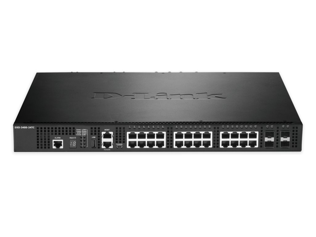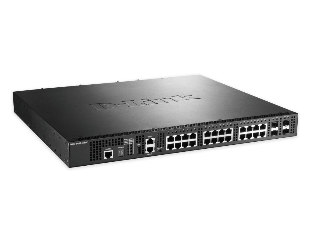 D-Link DXS-3400 Series Lite Layer 3 Stackable 10 GbE Managed Switches jsou kompaktní, vysoce výkonné přepínače, které nabízejí přepínání, směrování a ultra nízkou latenci 10Gigabitového Ethernetu. Výška 1U a vysoká hustota portů dělají řadu DXS-3400 vhodnou pro podnikatelské prostředí a prostředí univerzitních kampusů, kde je nedostatek místa. K dispozici jsou 10GbE měděné a optické verze. DXS-3400-24TC obsahuje dvacet 10GBASE-T (RJ45) portů a čtyři 10GbE “Combo” porty (RJ45/SFP+).
