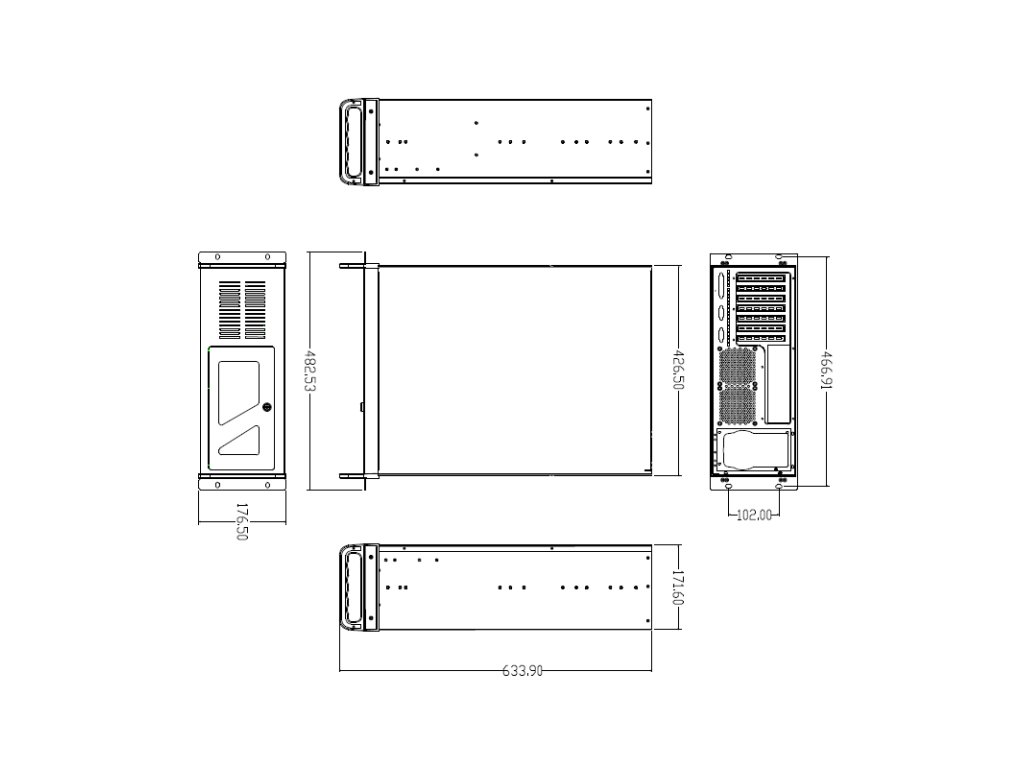 - case včetně úchytů 178 x 488 x 635 mm (V x Š x H)