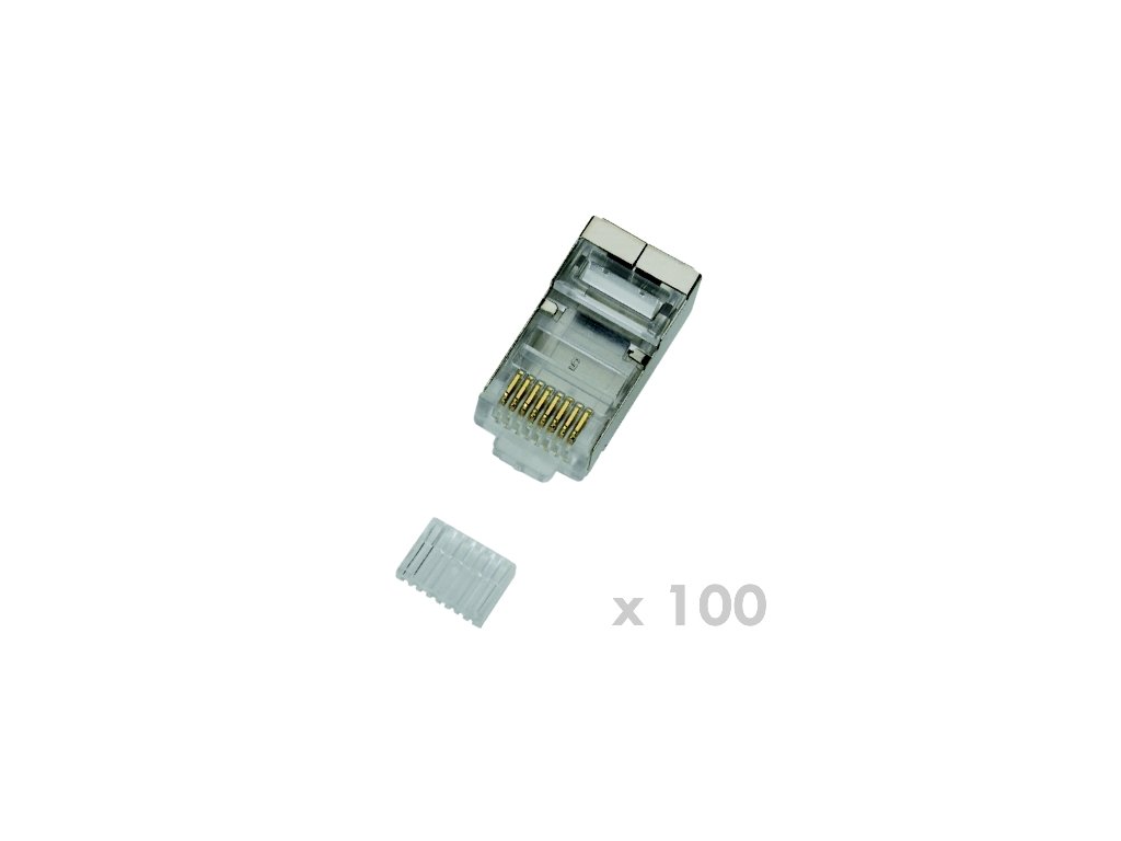 STP stíněný konektor RJ45 (8p8c) pro zakončení kabelů strukturované kabeláže typu drát.Balení obsahuje 100 ks.