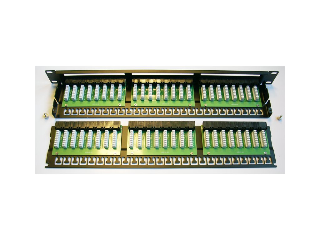 19" UTP Patch panel DATACOM 48 port- 19" Patch panel určený pro montáž do 19" datových rozvaděčů- 6 x 8 pozic zářezového pole LSA krone- výška 1U- cat. 5e- horní zářez- včetně vyvazovacího panelu- barva černáDodatočné parametre