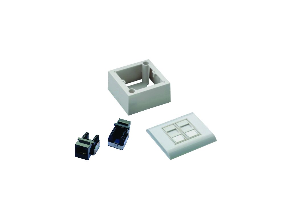 UTP 2x RJ45 dvojzásuvka Cat.6 pod i nad omítkubalení komplet s keystone, jak zobrazeno na obrázku
