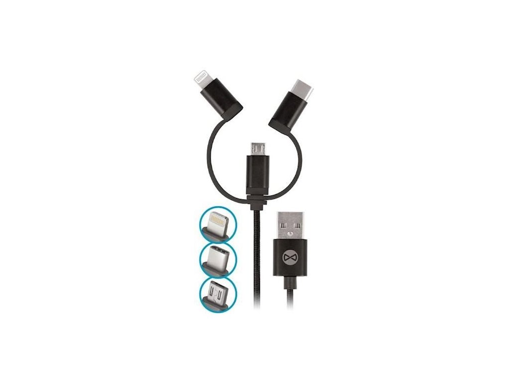 Datový kabel Forever 3v1 USB/microUSB, Lightning, USB-C 1m 1,5A černý