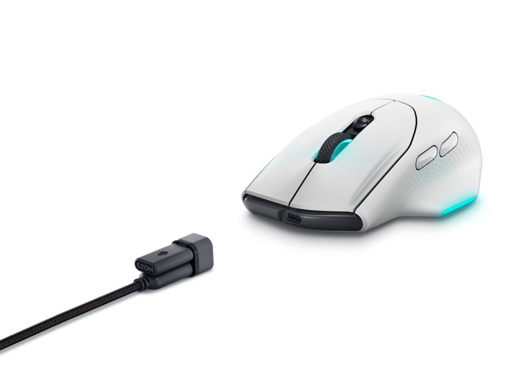 Dell Alienware 620M/Herní/Optická/Pro praváky/26 000 DPI/Drátová+bezdrátová/Bílá