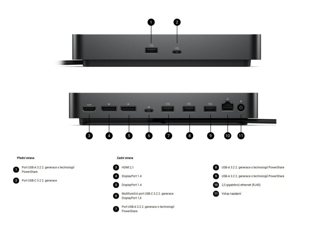 1× multifunkční rozhraní USB-C DisplayPort (7,5 W)