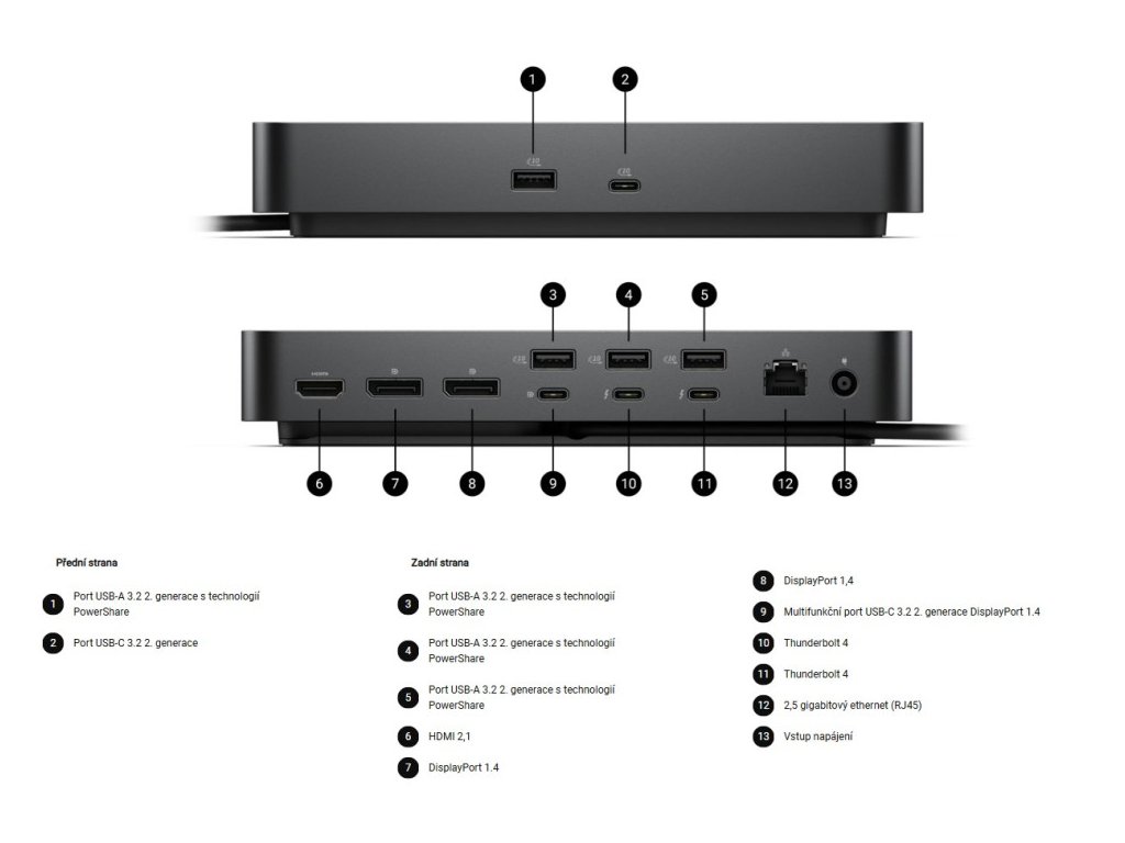 Napájení USB: 130 W (systémy Dell), 96 W (systémy jiných výrobců než Dell)
