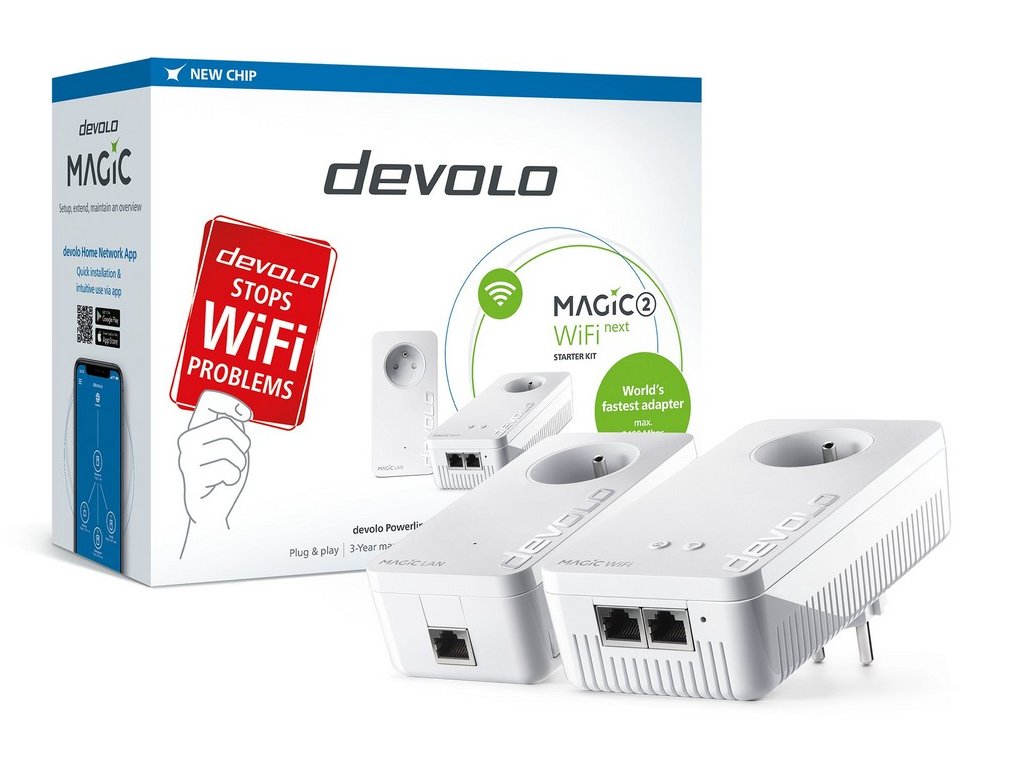 Devolo Magic – spolehlivá domácí síť vedená standardním elektrickým rozvodemNejpopulárnější formou síťového rozvodu v domácnostech i některých společnostech je bezdrátová síť Wi-Fi. Na mnoha místech jsou však frekvence využívané pro bezdrátový rozvod zahlceny nebo rušeny. Následkem toho dochází ke zpomalení nebo dokonce výpadkům plynulého toku dat, což má za následek zastavování streamovaného videa nebo prodlevy při hraní her. Systémy Devolo nabízí stabilní řešení datového rozvodu v domě, bytě či kanceláři bez nutnosti složité kabelové instalace. K propojení jednotlivých přístrojů a rozvedení internetového připojení využívají standardní elektrický rozvod. Stačí zapojit jednotlivé komponenty do zásuvky a k dispozici je rychlé internetové i datové propojení všech přístrojů.