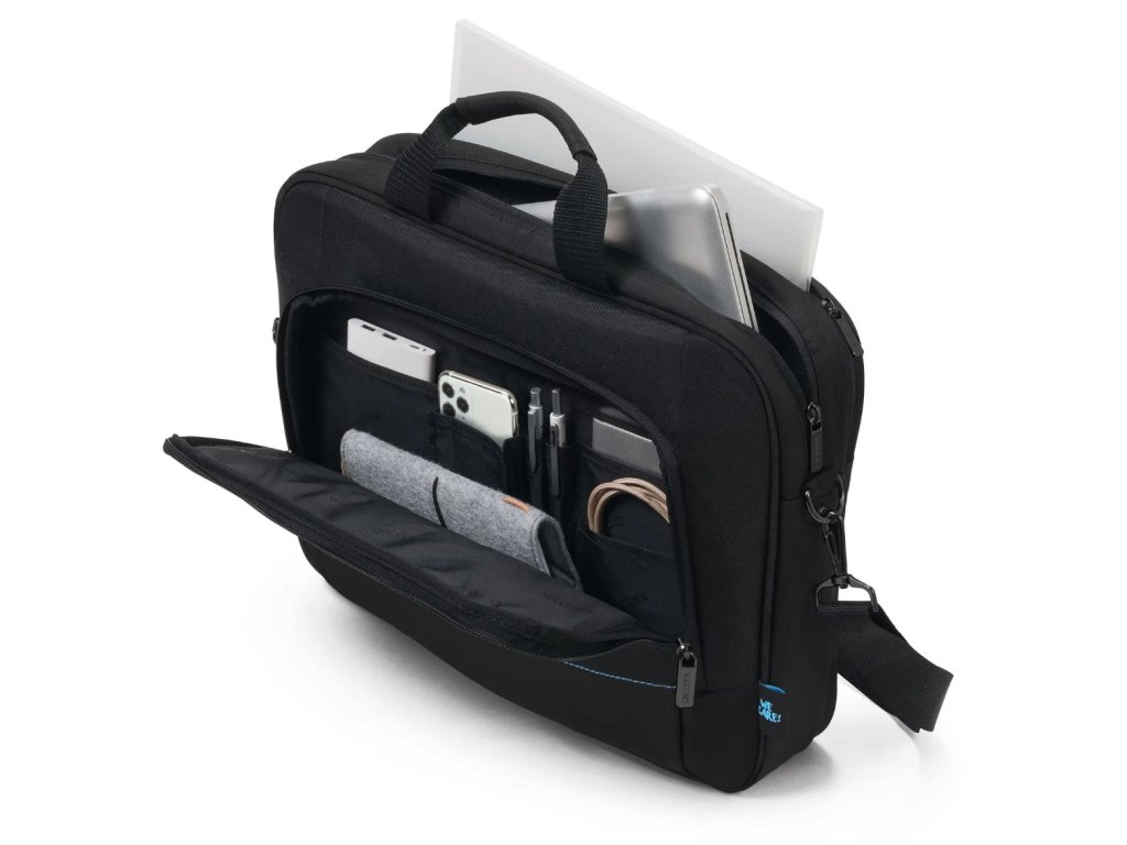 DICOTA Top Traveller TWO 13-14 BrašnaDíky klasickému hornímu otvírání lze rychle a snadno vyjmout notebooky a dokumenty. Dobře strukturované přihrádky udržují příslušenství přehledně uspořádané, zatímco polstrované rukojeti zajišťují pohodlí při přenášení.