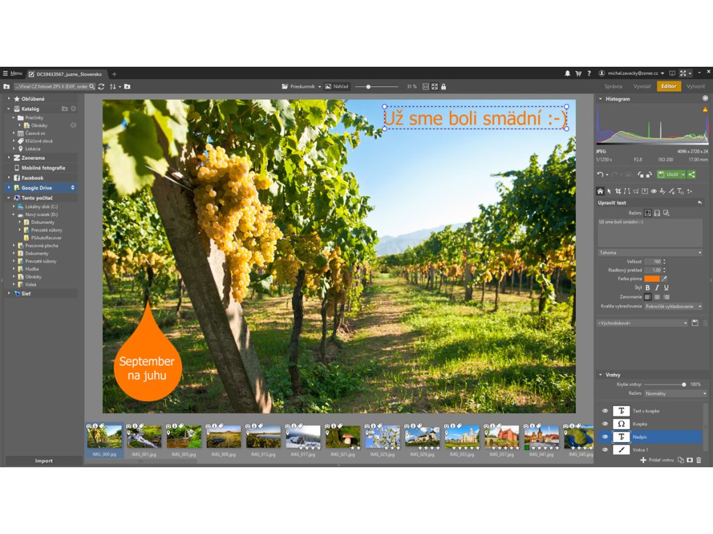 Produktový popis:Zoner Photo Studio X je jediný program pre prácu s fotkami, ktorý potrebujete. Ľahko v ňom zvládnete základné aj pokročilé úpravy. Pomôže vám so všetkým od stiahnutia fotiek do počítača cez ich vylepšenie až po výrobu fotopredmetov a ušetrí vám veľa času stráveného pri počítači.