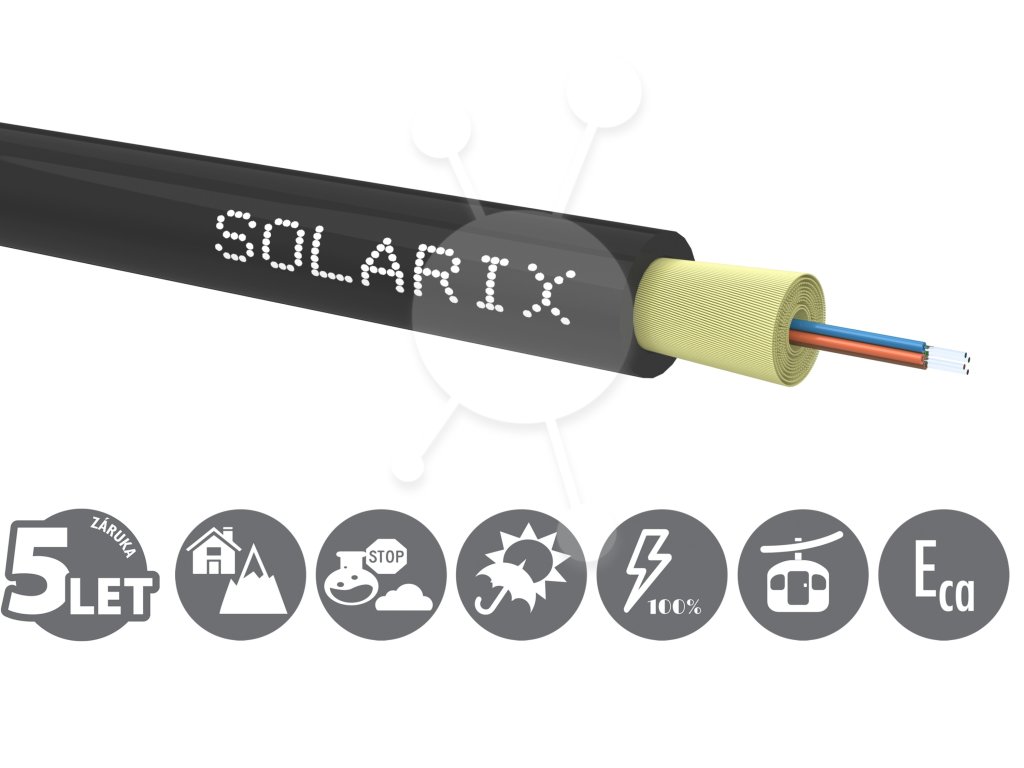 Univerzální optický DROP kabel Solarix je určen pro vnitřní i venkovní instalace (FTTH). Díky své vysoké tahové odolnosti 1000 N a kompaktnímu průměru 3 mm je ideální pro zafukování do trubek, instalaci do lišt nebo pro krátké převěsy.