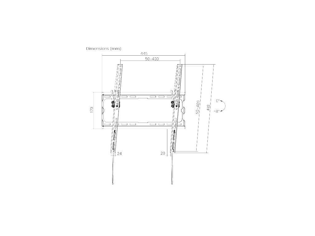 • Volně sklopitelná konstrukce pro jednoduchou změnu náklonu TV v úhlu 0°~-8°