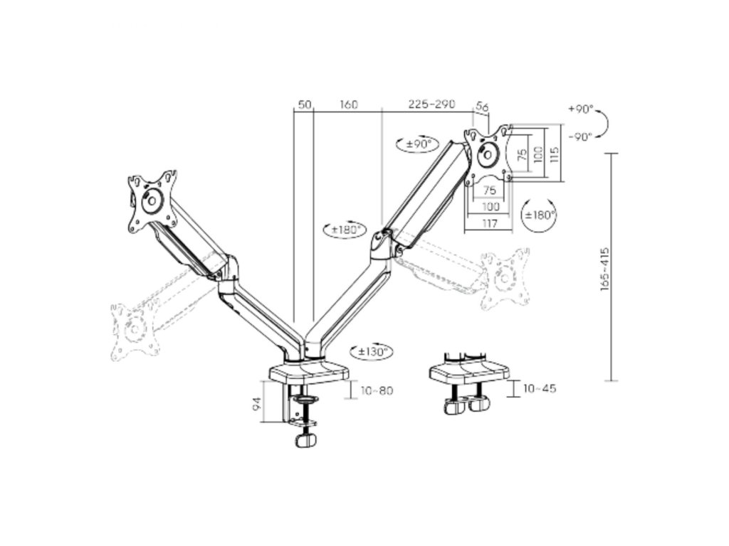 Držák monitoru Brateck LDT46-C024E dvě ramena vedle sebe mechanická pružina