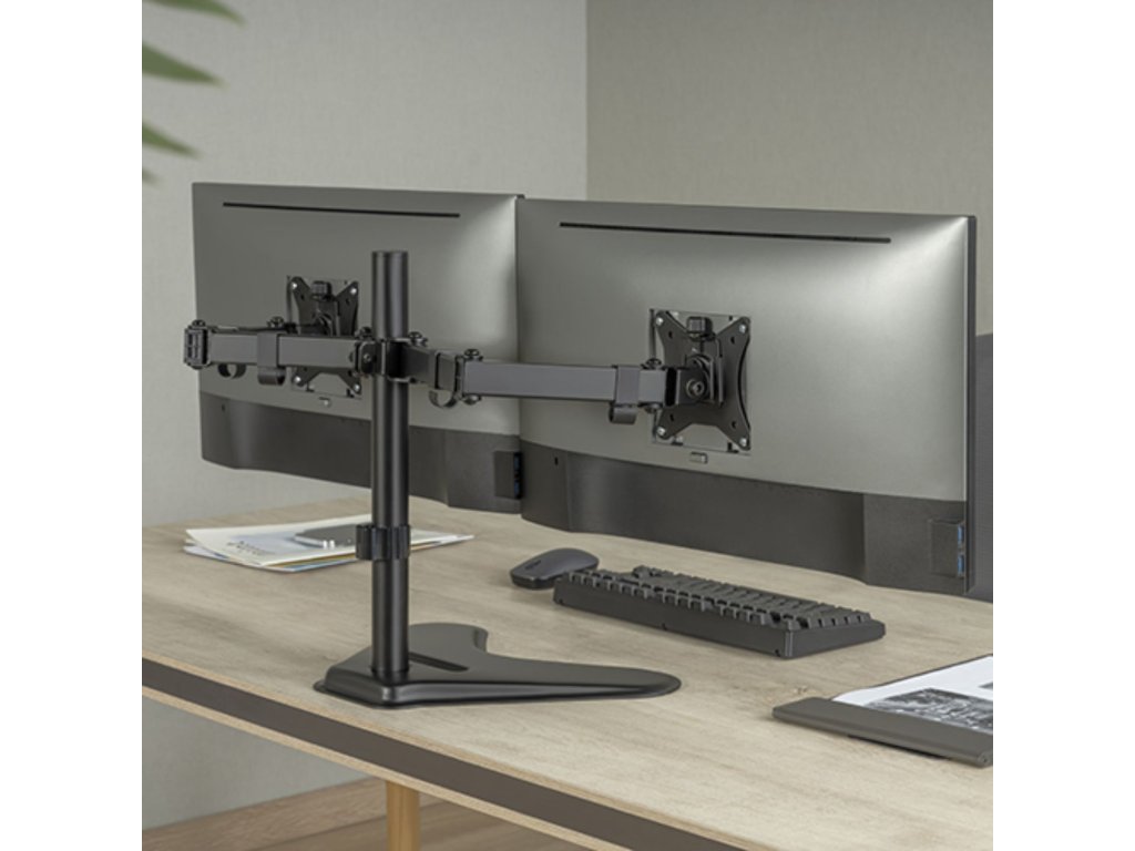 Držák monitoru Brateck LDT66-T024 je inovativní stolní držák, který byl navržen s ohledem na vaše potřeby a zlepšení pracovního prostoru. Tento všestranný stolní držák je ideální pro použití s různými typy monitorů, ať už pracujete z domova, v kanceláři nebo ve vzdělávacím prostředí. S držákem monitoru Brateck se vaše pracoviště stane efektivnějším a pohodlnějším.Díky odolné ocelové konstrukci poskytuje stabilní podporu pro dva monitory s úhlopříčkou 17" až 32" a hmotností až 9 kg na rameno. Flexibilní konstrukce pro dostatečné nastavení výšky a pozorovacích úhlů s možností nastavení orientace monitoru na výšku nebo na šířku. Odnímatelná deska VESA umožní uživatelsky přívětivou instalaci. Praktický slot pro telefon umístěný na základně. Součástí balení jsou kabelové spony pro usnadnění organizace vedení kabelů.