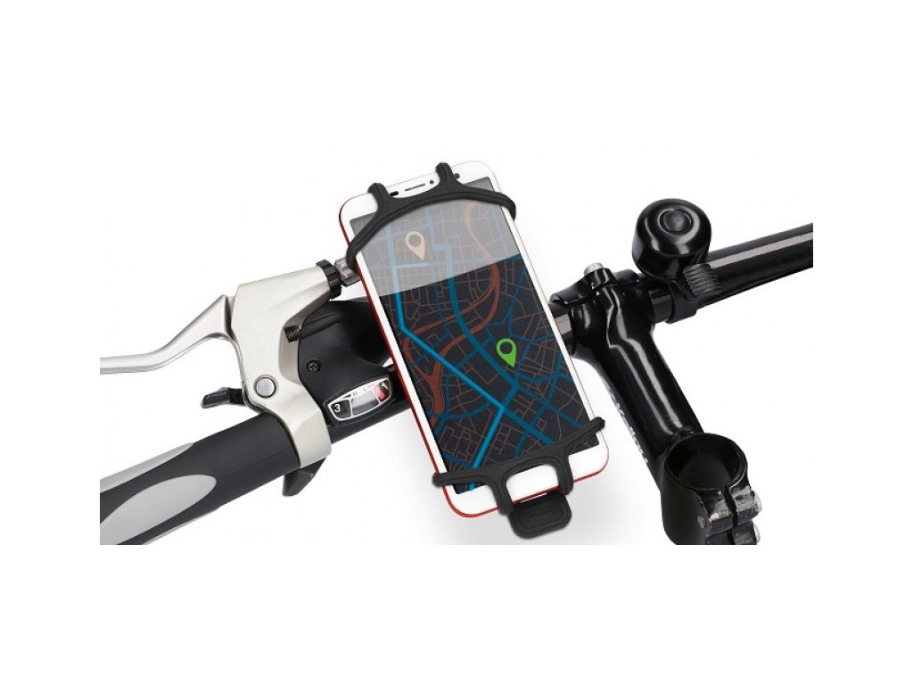 Univerzální držák na řídítka kola/koloběžky nebo kočárku z flexibilního gumového materiálu. Upevnění mobilního telefonu pomocí napínacích a zároveň šetrných gumiček. Spolehlivé a bezpečné uchycení mobilního telefonu ve velikosti 4-6,5“. Decentní minimalistické provedení, které nezabírá na řídítkách tolik místa. Dalšími hlavními přednostmi jsou například sportovní design nebo systém rychlofixace.*Rychloupínací systém