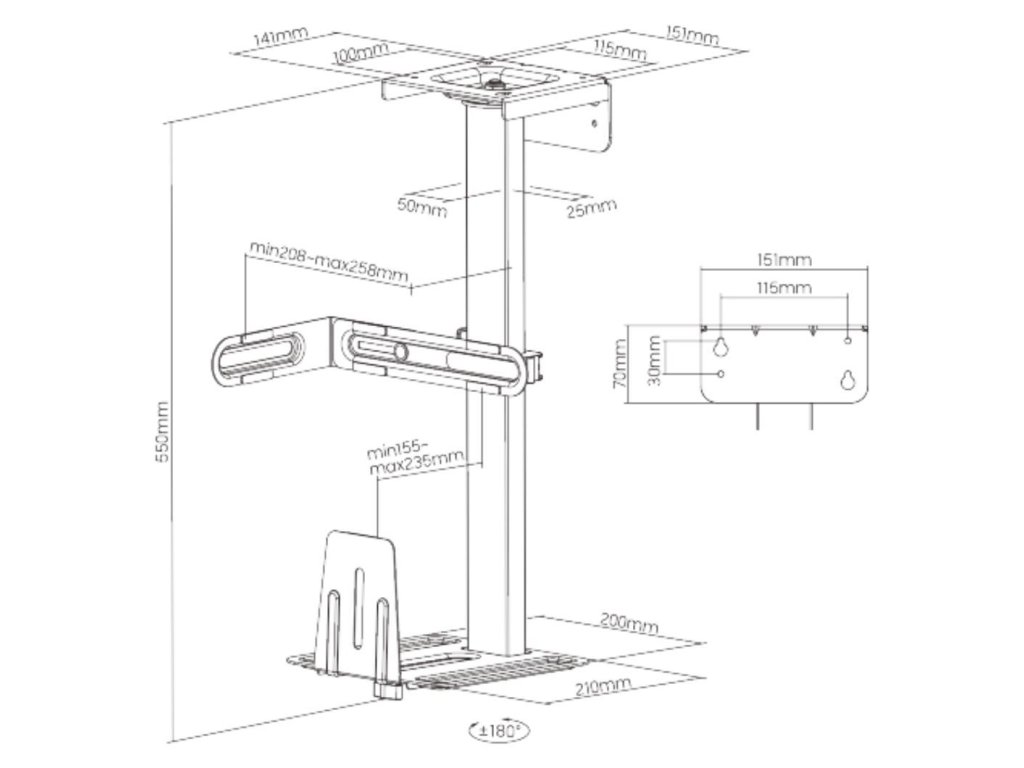 Držák na PC Brateck CPB-25 pod stolní desku kompatibilní s desktopovými počítači o šířce 155-235 mm, s nosností až 30 kg.Držák na PC Brateck CPB-25 je navržen s konstrukčním systémem zaměřený na stabilitu a snadnou montáž. Tento držák nabízí ideální řešení pro umístění vašeho počítače pod stolní desku nebo na stěnu, čímž šetří místo a udržuje váš počítač v čistotě a chrání jej před poškozením. Díky svému promyšlenému designu a výjimečné stabilitě je držák CPB-25 skvělou volbou pro všechny, kdo hledají funkční a cenově dostupné řešení pro upevnění svého počítače.
