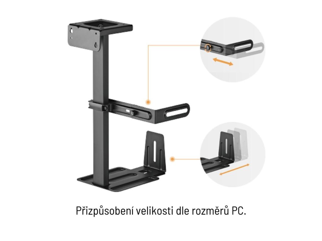 • Nastavitelná šířka a hloubka: Ideální pro různé velikosti počítačů (šířka 155–235 mm).