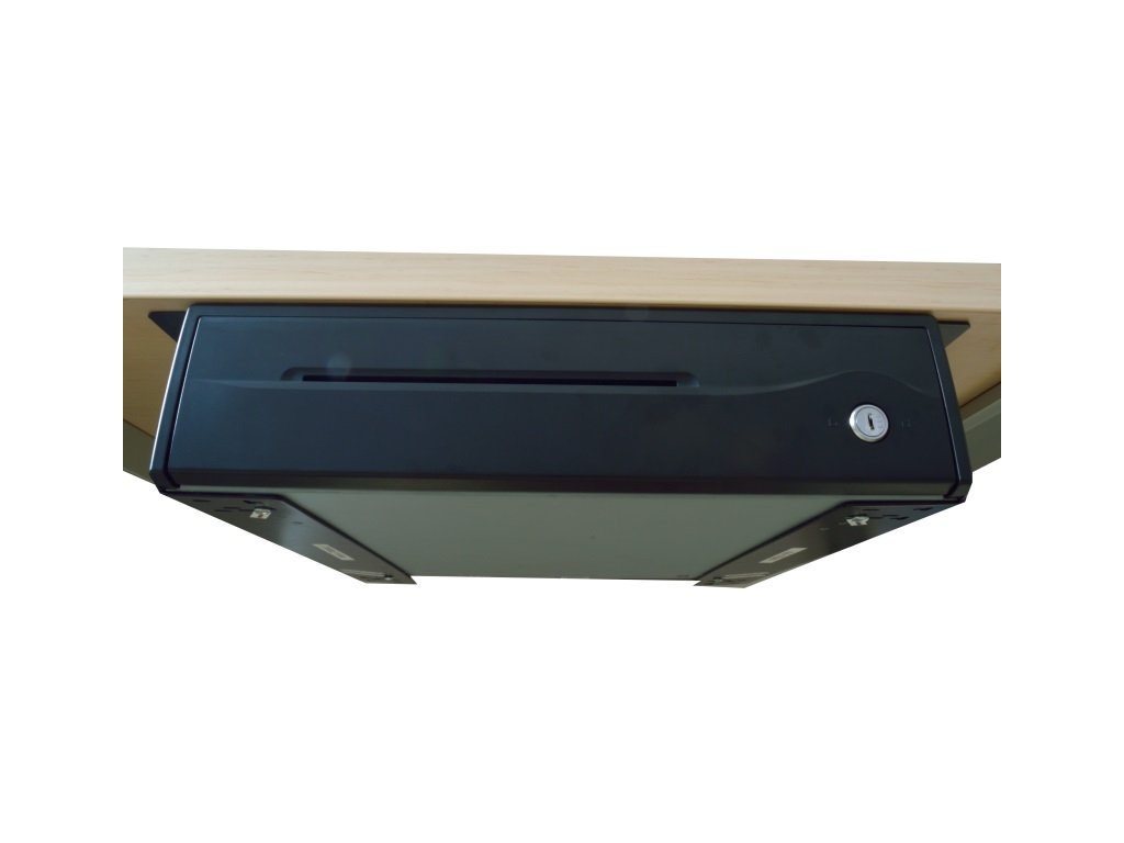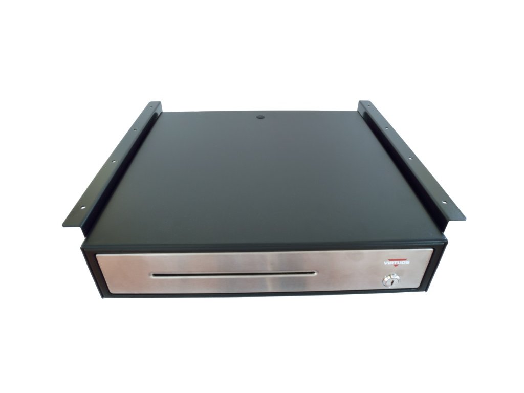 Sada dvou kusů držáků pro zavěšení pokladních zásuvek Virtuos C420x, C425 a C430x pod pracovní desku nebo prodejní pult, včetně sady šroubů* Robustní držák pro upevnění pokladní zásuvky pod pracovní desku nebo pokladní pult