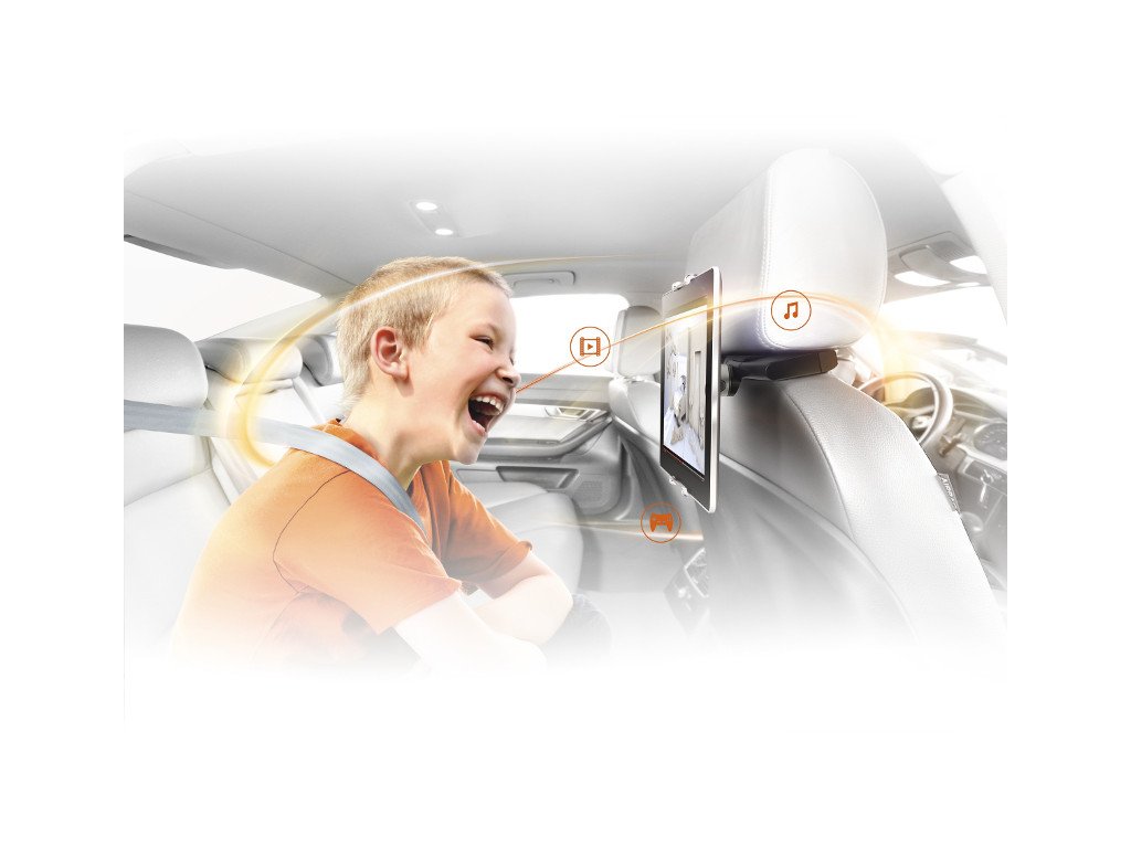Díky držáku TMM 1020 změníte snadno zadní část vašeho vozidla v pohyblivý multimediální prostor. Při montáži nepotřebujete žádné nástroje. Na tablet jednoduše nacvaknete univerzální adaptér a ten uchytíte na držák na opěrce. Vaše děti si budou užívat oblíbené hry, filmy a aplikace a vy se nemusíte obávat, že v případě prudkého brzdění může volně pohybující se tablet někoho zranit.