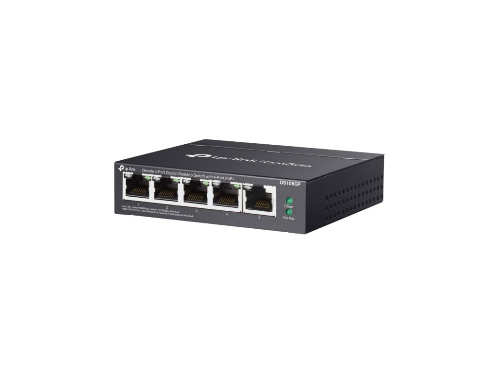 TP-Link DS105GPTP-Link DS105GP je 5portový gigabitový desktopový switch s podporou PoE+ na čtyřech portech. Nabízí tichý provoz bez ventilátoru, prodloužený přenos dat a napájení v režimu Extend a funkci automatického obnovení napájených zařízení.