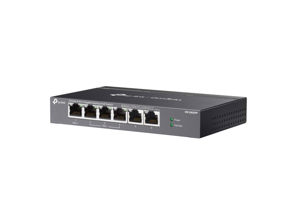 TP-Link DS106GPPTP-Link DS106GPP je 6portový gigabitový desktopový switch s podporou PoE+/PoE++ a tichým bezventilátorovým provozem. Nabízí spolehlivý přenos dat i napájení, funkci automatického obnovení a prodloužený dosah napájení v režimu Extend.