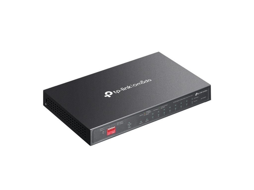 TP-Link DS110GMPTP-Link DS110GMP je 10portový gigabitový desktopový switch s 8 PoE+ porty a tichým bezventilátorovým provozem. Nabízí spolehlivý přenos dat a napájení v jednom kabelu, prodloužený dosah a pokročilé režimy pro zvýšení bezpečnosti a výkonu sítě.