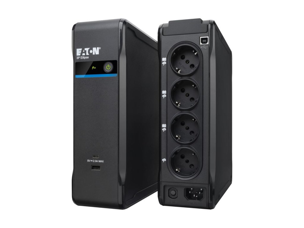 Eaton 3P Ellipse UPS USB DIN, 700 VA, 420 W, Input: C14, Outputs: (3) Schuko, (1) Schuko surge only, USB charge, TowerVÝSTUP