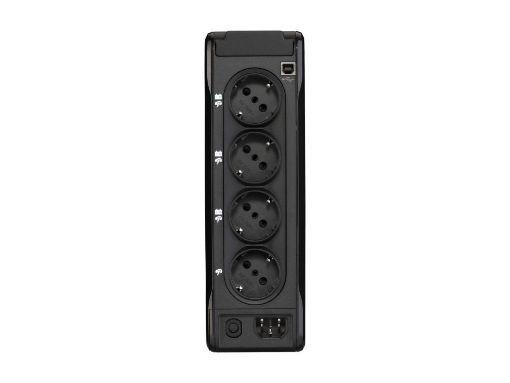 Výstupní přípojky: (3) Schuko, (1) Schuko surge only