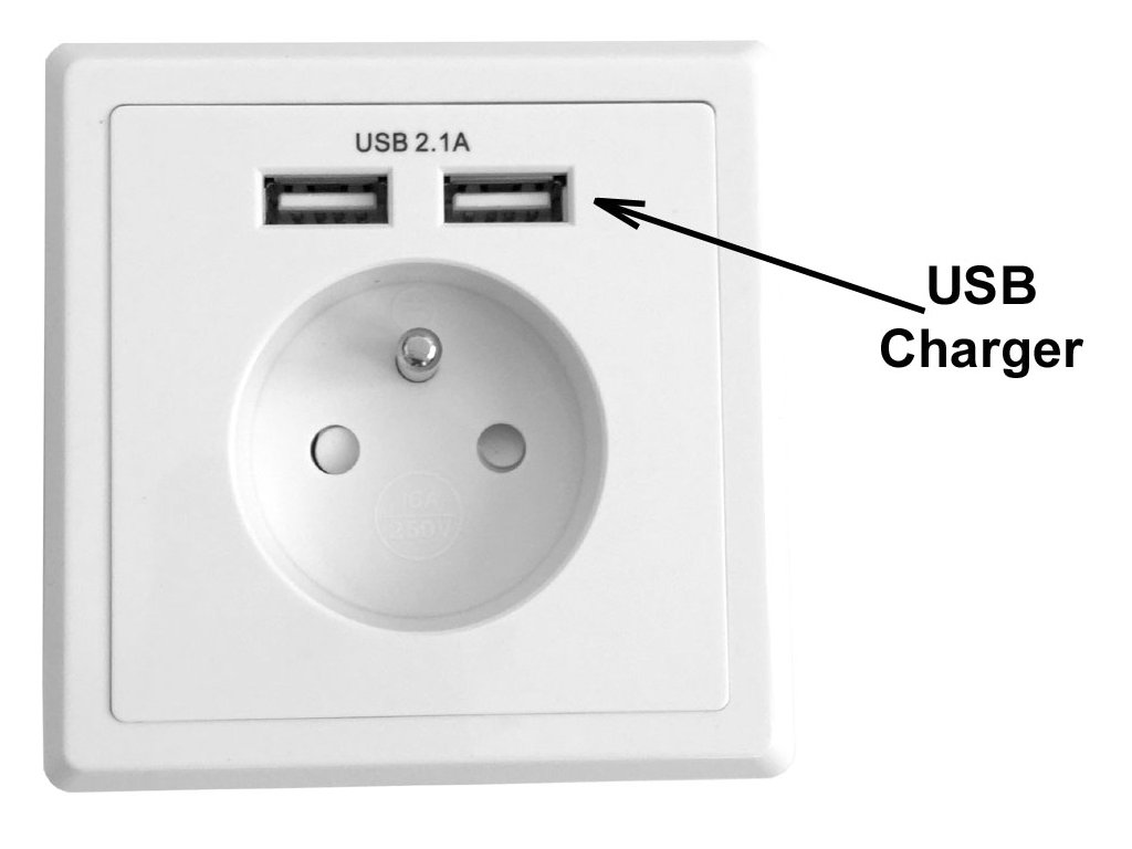 Současné využití obou portů USB. Pro snadné nabíjení všech mobilních zařízení, které jsou vybaveny rozhraním USB, jako je například iPhone, iPad a smartphony.Maximální náboj ze dvou portů USB je 2.1A.Výstup je chráněn elektronickou ochranou proti zkratu, ochranou proti přetížení a síťové funkce filtru.Rozměry: 79mm x 79mm, potřebná hloubka 40mmBarva: bíláCertifikát: CE, FCC, ROHS standard: Evropská normaDodatočné parametre