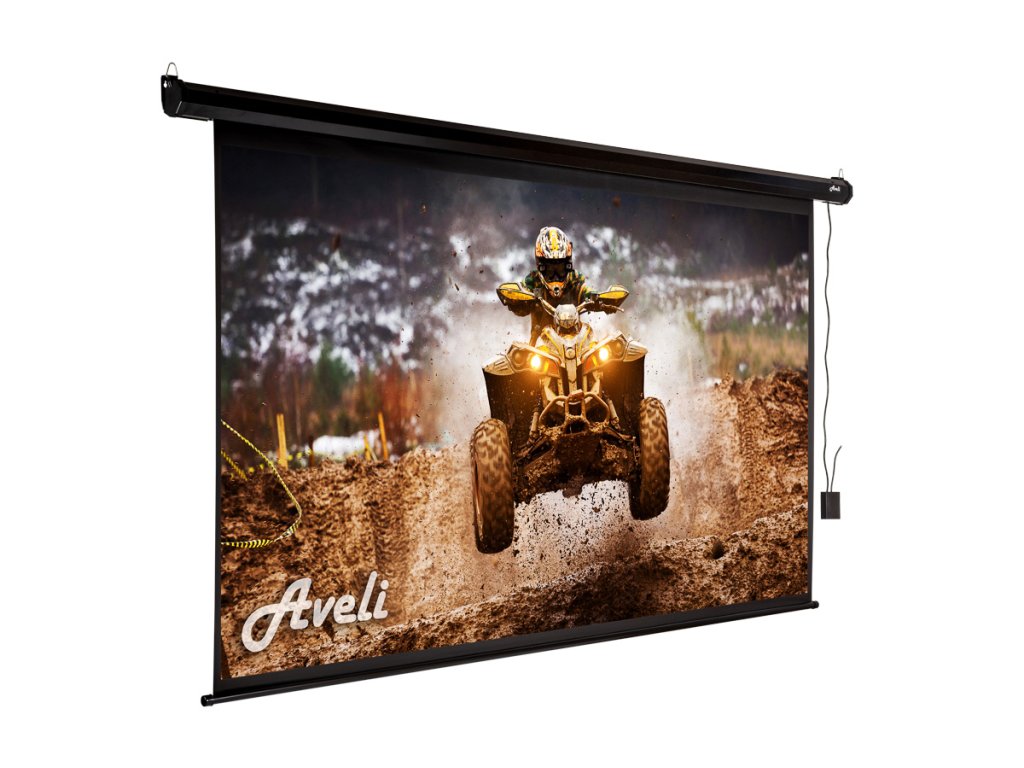 Elektrické projekční plátno AVELI, 221x125 (16:9) 100", černý tubus