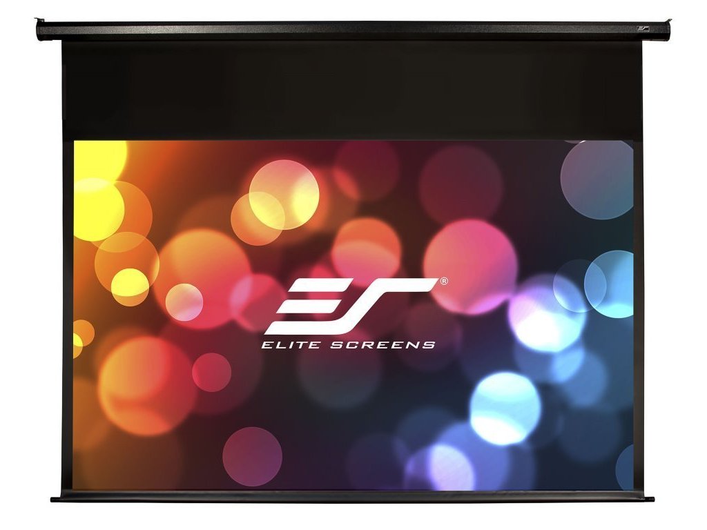 Elite Screens VMAX150UWH2-E24VMAX150UWH2-E24 model patří mezi elektrická roletová plátna s technologií MaxWhite FG. Tento materiál nabízí šířku zorného úhlu až 160°, je odolný a snadno se myje. Plátno s rozměry 186,9 x 332 cm a úhlopříčkou 150" (381 cm) nabízí poměr stran 16:9 a zvýšený 24" široký horní okraj. Synchronizovaný motor umožňuje tichý provoz s delší životností a menší spotřebou. Plátno lze instalovat na zeď nebo strop díky odolné kovové konstrukci. Součástí balení je kromě standardního IR ovládání, také RF ovládání s dosahem až 30 metrů.