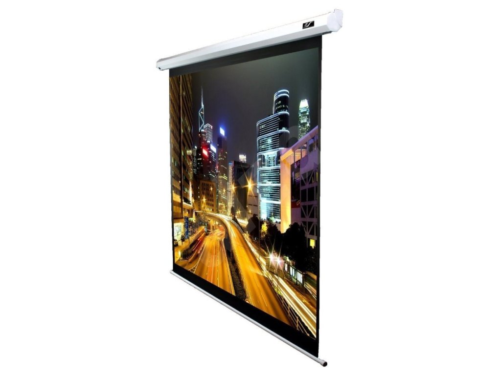 Elite Screens VMAX92XWH2Elektrické nástěnné stahovací plátno s úhlopříčkou 92" a poměrem stran 16:9. Pozorovací úhel 160° pro prezentace ve velkých skupinách. Odolná kovová konstrukce pro instalaci na zdi a stropy. Součástí balení je kromě standardního IR ovládání, také RF ovládání s dosahem až 30 metrů.