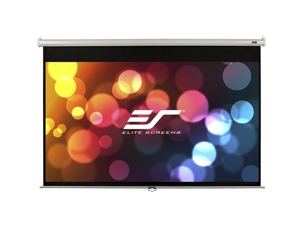 Elite Screens M113UWS1Manuální nástěnné stahovací plátno s úhlopříčkou 113" a čtvercovým poměrem stran 1:1. Široký pozorovací úhel 180° pro komerční prezentace nebo domácí kino.
