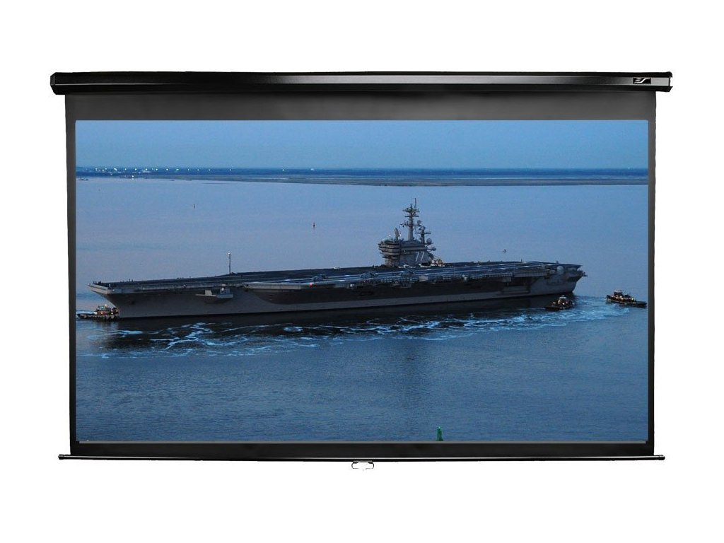 Elite Screens M128UWXRuční plátno typu roleta s úhlopříčkou 128" a černou konstrukcí.