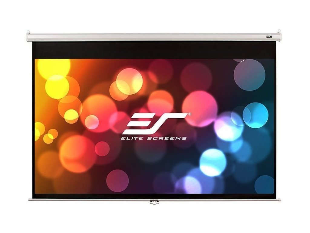 Elite Screens M135XWH2Mechanické roletové plátno s úhlopříčkou 135" a technologií MaxWhite, která používá bílou projekční plochu a speciální černé pozadí s omezením nežádoucího rozptylu světla, kromě toho nabízí šířku zorného úhlu až 160°, je odolné a snadno se myje.