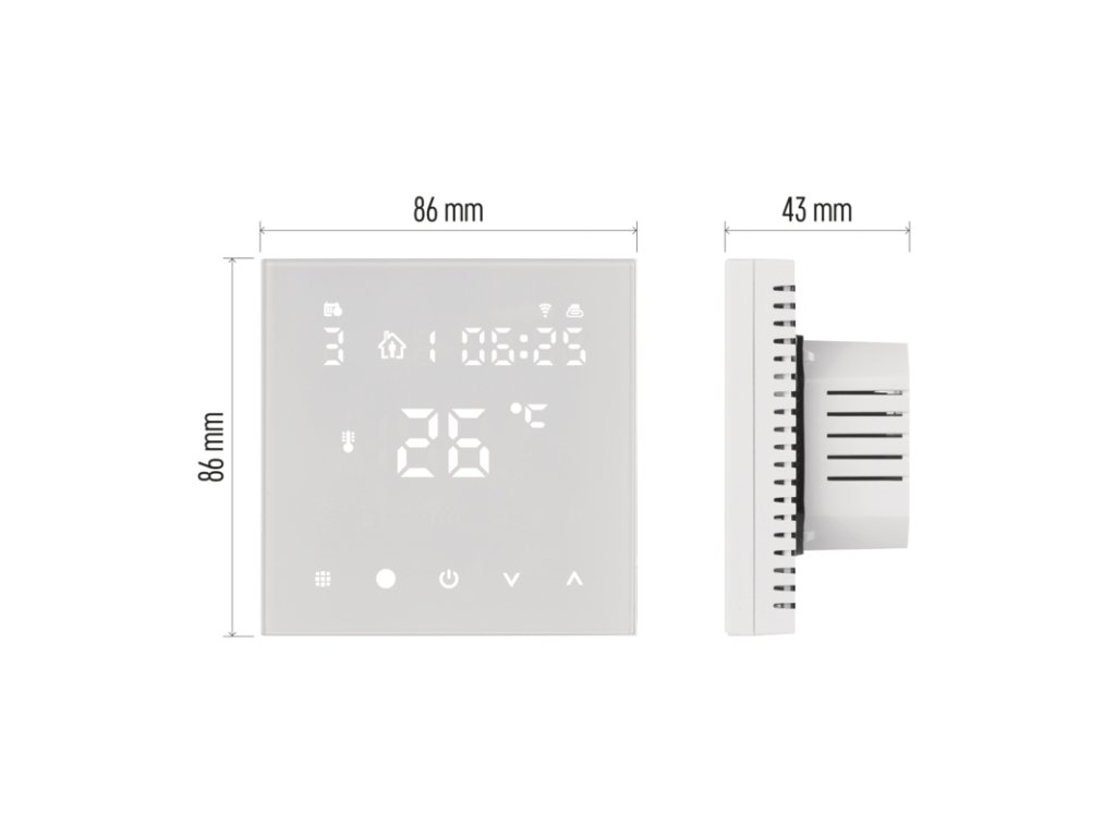 typ ovládání programovatelný elektronický pokojový termostat, možnost ovládaní přes mobil (iOS, Android)