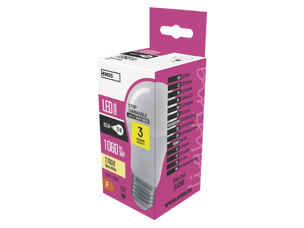 EMOS LED CLS A60 3×DIMM 10,5W(75W) 1060lm WW