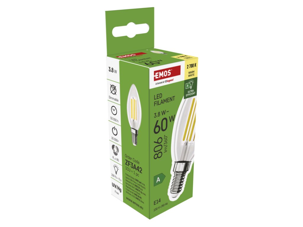 EMOS LED FLM CANDLE 3,8W(60W) 806lm E14 WW A CLASS