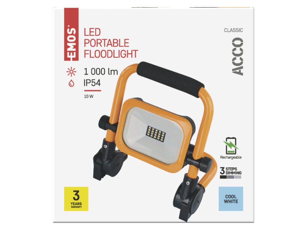 EMOS PŘENOSNÝ NABÍJECÍ LED REFLEKTOR ACCO 10W, 1000LM, IP54