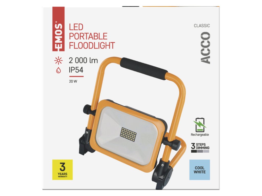 EMOS PŘENOSNÝ NABÍJECÍ LED REFLEKTOR ACCO 20W, 2000LM, IP54