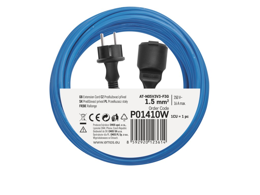 EMOS PRODLUŽKA 1Z 10M 1,5MM NEMRZNOUCÍ KABEL