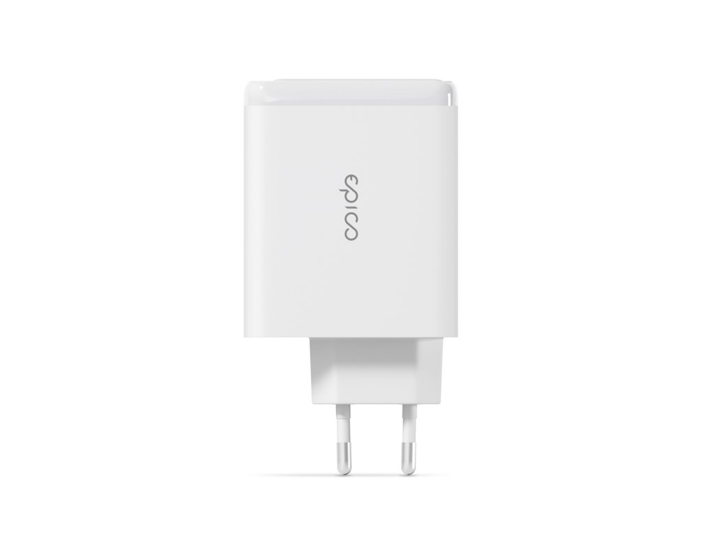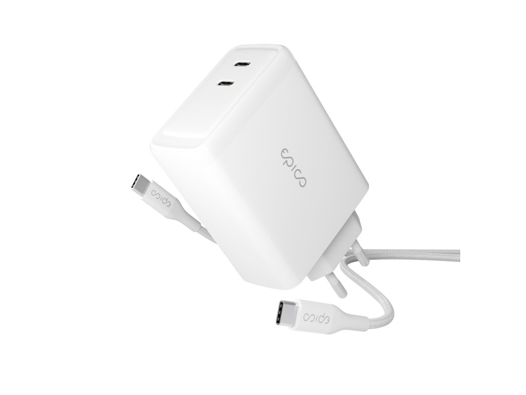 Nabíječka do sítě - s technologií GaN, maximální výkon 100 W, výstup 2x USB-C, technologie rychlého nabíjení USB Power Delivery, přepěťová ochrana, USB-C na USB-C kabel v balení, barva bíláEpico 100W GaN Charger Bundle je efektivní řešení pro nabíjení dvou zařízení současně, například vašeho MacBooku a iPadu. Nabíječka je vybavena dvěma výstupy USB-C, které dohromady poskytují maximální výkon až 95 W (65 W + 30 W). Oba výstupy disponují při používání samostatně výkonem až 100 W. Díky využití technologie GaN nabízí tato nabíječka efektivní nabíjení, které je ideální pro každodenní potřeby. Technologie Power Delivery se stará o optimalizované nabíjení. Díky vestavěné ochraně proti přepětí, nadproudu, zkratu a podpětí jsou vaše zařízení chráněna při každém použití.